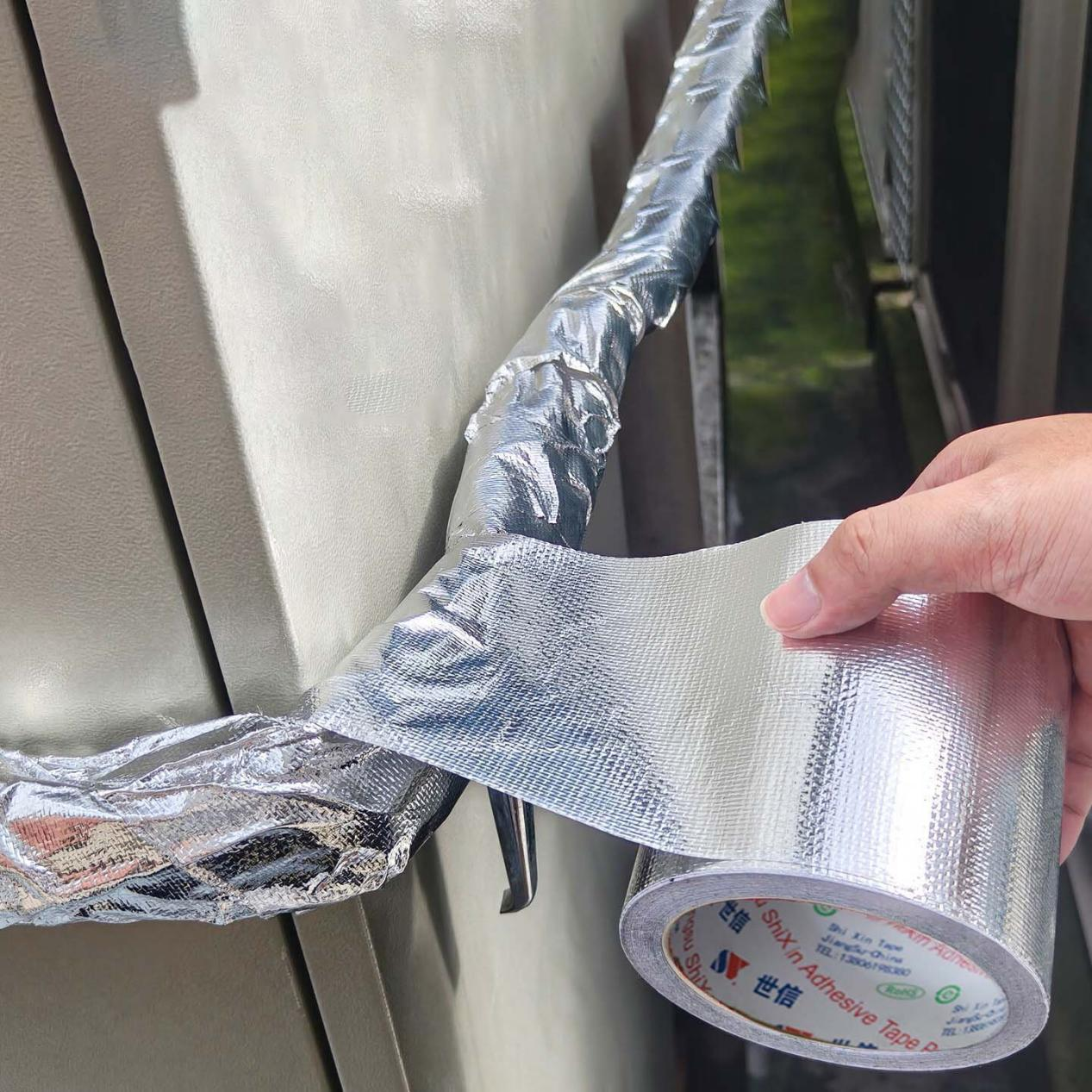 | Těsnění a izolace HVAC potrubí | Vysoká lepivost, dobrá přizpůsobivost, označení UL 181A-P nebo B-FX, teplotní odolnost, parotěsná zábrana | Standardní nebo zesílené hliníková páska pro izolaci HVAC s akrylovým lepidlem. |